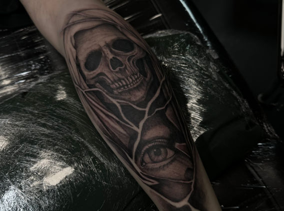 Mijn specialisaties zijn surrealisme, black & grey en moderne neotribals – stijlen waarmee ik het liefst diepere betekenissen, symboliek en rauwe emotie tot leven breng op de huid.